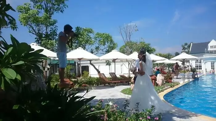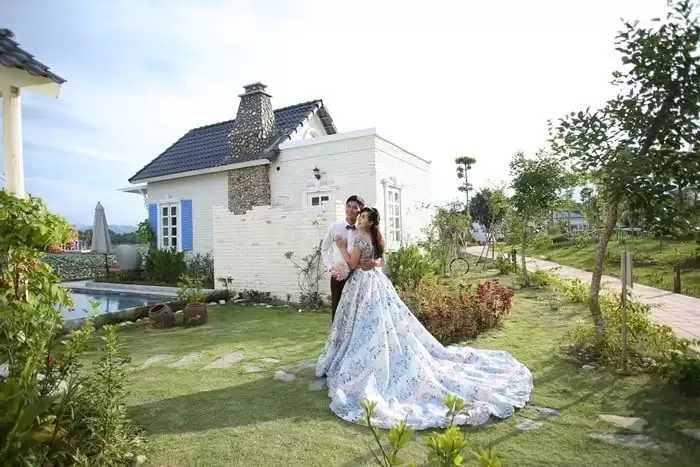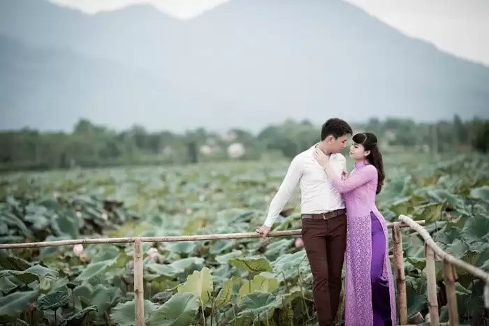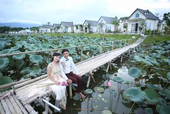 Vào mua sen nở rộ, nhiều cặp đôi mới cưới hay sắp cưới cũng đều kéo về đầm sen Bạch Thủy để chụp ảnh cưới hay hưởng thụ tuần trăng mật ngọt ngào, hạnh phúc bên nhau. Đặc biệt, những đôi bạn trẻ sẽ sở hữu những bức hình chụp bên đầm sen đẹp nhức mắt với sự hướng dẫn nhiệt tình của nhân viên nơi đây. Chỉ cần bộ yếm đào, áo dài, nón quai thao…bạn sẽ được hóa thân thành những chàng trai, cô gái đậm chất Bắc Bộ xưa. Nhìn mới lạ và hấp dẫn biết bao.