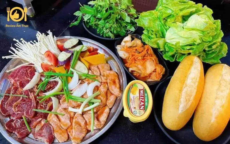 - Menu: Thịt nướng tẩm ướp gia vị, nầm bò nướng, bia rượu, bánh mì bơ,…
