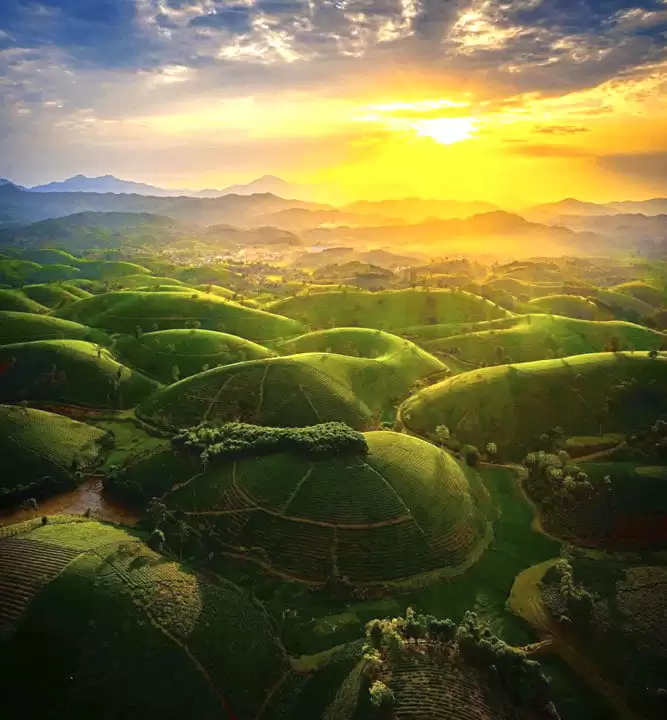 Nhiều nhiếp ảnh gia ví von những đồi chè được coi như “vịnh Hạ Long vùng Trung du” khi những quả đồi nhấp nhô ngút ngát chè nằm lớp lớp trải dài như vô tận trong ánh hoàng hôn…