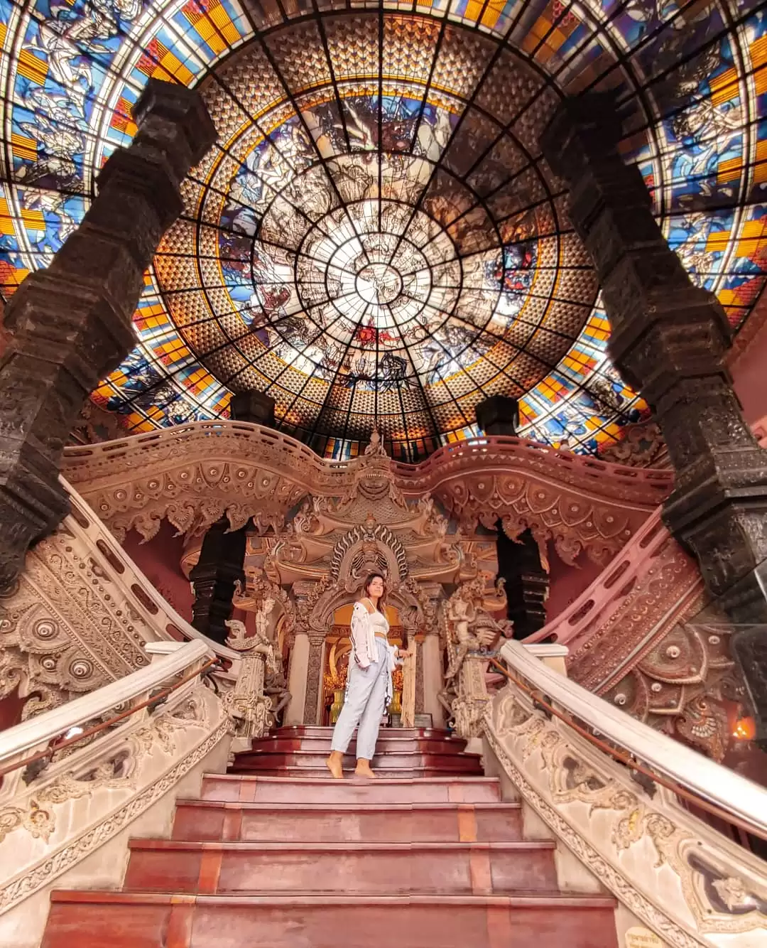Đặc biệt hơn, bên dưới bức tượng khổng lồ này lại chính là một bảo tàng với không gian điêu khắc tượng trưng cho nền văn hoá của người Thái cũng như phương Đông cổ xưa. Những vòm kính đủ màu sắc, những chiếc cầu thang xoắn lạ mắt, nhiều ô cửa được thiết kế và trang trí nguy nga,… tất cả đều có thể trở thành background sống ảo xuất sắc nếu bạn chịu khó để ý.