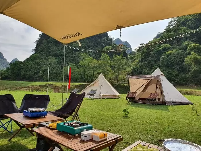 Trên đường đến thác Bản Giốc, bạn sẽ tìm được một số khu đất phẳng và rộng rãi để cắm trại hay tổ chức picnic trong ngày. Trải nghiệm cắm trại ngay tại thác Bản Giốc sẽ khiến bạn nhớ mãi về mảnh đất Cao Bằng thân yêu.