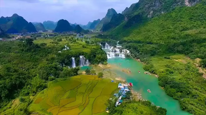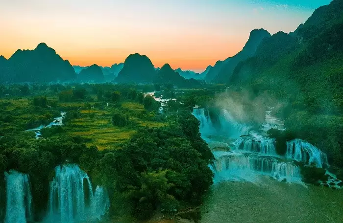 Thác Bản Giốc khi nhìn từ trên cao mang vẻ đẹp hùng vĩ hiếm có (Ảnh: PYS Travel)