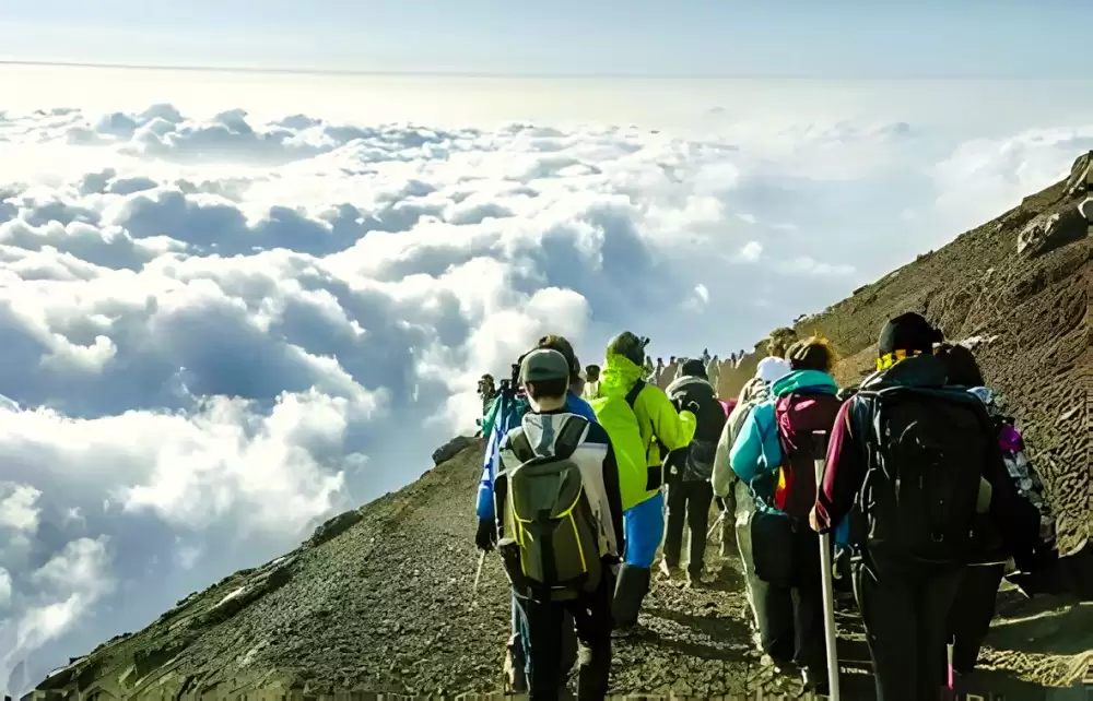 Theo dự tính, bạn sẽ mất sáu tiếng để đi lên và hơn bốn tiếng để đi xuống, và đường đi xuống là lối đi riêng. Đường mòn này thường được sử dụng để ngắm cảnh bình minh lộng lẫy trên đỉnh núi. Do đó, con đường này thường được chia thành hai phần, với địa điểm nghỉ qua đêm là tại trạm thứ 7 hoặc thứ 8.